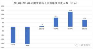 从2013年开始,安徽省外出人口开始净流回,4年内共流回近40万人。在此之前,安徽每年净流出都是-20万人。这说明,这些年沿海产业一直在往内地转移,越来越多的外出打工者回安徽找到工作,安徽的就业机会比以前多了很多。