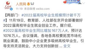 这上面显示2022届毕业生第一次冲破千万大军,比去年同比增长了167万。这对我们2022届来说,简直就是天大的打击。