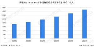中国向外资全面开放物流业以后,中国物流业的发展迈入了一个全新的阶段。外资大举投向物流行业,国外的物流商和物流信息化技术供应商加快了进入中国的步伐,国际上竞争的巨头在国内均可找到,国际竞争国内化,这使得中国的物流行业迅速与国际接轨。政府也不断加大对物流规划和投资的力度。未来五年,预计中国物流信息化行业市场规模将以15%的增长率持续增长,2027年行业市场规模有望超过1480亿元。