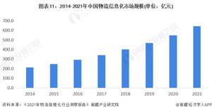 我国物流企业的信息化建设起步较晚,我国只有40%的物流供给企业拥有物流信息系统,信息化程度较低,目前距离物流信息化的目标还有很大距离,无法满足市场需求。随着我国十四五规划的出台,物流信息化企业的技术研发水平不断提高。我国物流信息化行业市场规模从2014年的212.5亿元增长至2021年的642.8亿元,年复合增长率达17.12%。