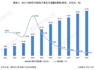 2011-2020年我国电子商务交易额逐年增长,但增速不断下降。2020年,全国电子商务交易额达到37.21万亿元,同比增长4.5%。