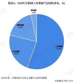2020年,互联网人身保险产品结构持续调整,各类险种占比也出现一定的变化。其中,人寿保险仍为主力险种,占比为55.6%,较去年同比下降近10个百分点;年金保险占比为23.2%,较去年同比上升4个百分点,成为第二大险种;健康保险占比为17.8%,较去年同比上升5个百分点;意外险占比与去年基本保持一致,为3.4%。