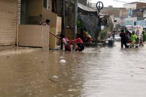 从7月中旬开始,当地就发生了强降雨,很多居民住的房屋被雨水冲垮,大家的饮用水安全也受到了威胁,而伴随着洪水而来的就是霍乱,很多人在这场灾难当中丧失。情况一直持续到7月底,不仅没有少转,甚至还越来越严重,就连第一大城市卡拉奇都遭遇了非常严重的内涝。到了8月中下旬,巴基斯坦又迎来了一场强降雨,给原本就糟糕的情况雪上加霜。