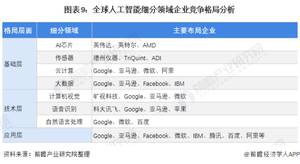 从细分领域来看,人工智能涉及范围广阔,除科技巨头全方位深度参与外,其他企业在行业中依赖自身优势参与竞争,构建了纷繁复杂的竞争格局。其中,基础层领域硬件发展日新月异,巨头布局开源平台;技术层面向企业级应用,细分领域竞争较为激烈;应用层想象空间广阔,参与企业众多。