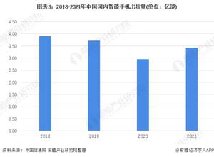 2018-2021年,国内市场智能手机出货量趋势与全部手机出货量趋势相似,在接连下降后,2021年中国国内市场智能手机出货量为3.43亿部,较2020年增长15.9%。