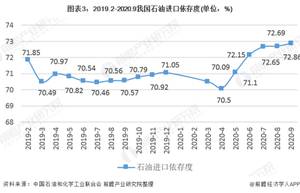 2019年2月到2020年9月,根据中国石油和化学工业联合会公布的石油进口依存度,我国石油进口依存度呈上升的态势。根据石油经济技术研究院发布的数据,2019年我国原油对外依存度突破70%,远超50%的国际警戒线。