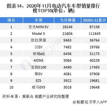 值得注意的是,2020年中国电动汽车品牌快速发展,其中比亚迪在高端电动汽车市场获得较好的口碑,上通五宏光自上市以来销量不断攀升,在经济车市场占据了主导地位。根据乘联会发布的11月销量数据显示, 2020年11月新能源汽车销量-EV销量排行榜中,宏光MINI EV销量为28246辆, 位居第一。
