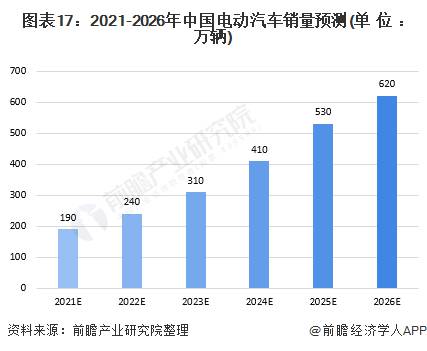 随着我国电动汽车相关配套设施建设的不断完善,电动汽车的性能将持续提高,预计我国电动汽车行业规模有望快速增长,预计到2026年我国电动汽车销量将达到620万辆。