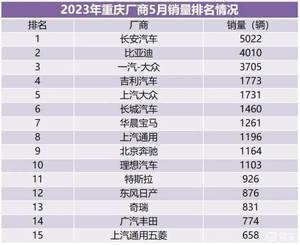 同、环比双增长,重庆5月销量达3.5万辆,新能源持续高走