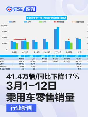 3月1-12日国内乘用车零售销量:零售41.4万辆/同比下降17%