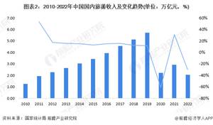2010-2021年,中国国内旅游收入先升后降态势,下降主要源于疫情影响。2020年,中国国内旅游收入为2.23万亿元,相比2019年下降61.07%。2021年,随着疫情形势有所好装,国内旅游收入有所回升,为2.92万亿元,相比2020年上升30.98%,达到2019年50.99%的水平。2022年全年国内旅游收入2.04万亿元,比上年减少0.87万亿元,同比下降30.0%。