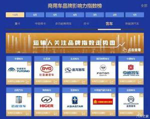 6月,福田汽车销售大型客车813辆,同比增长261%;1-6月累计销售客车1969辆;品牌关注度为333,位居排行榜第四名。
