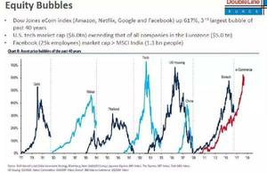 关于股市,Jeff Gundlach借用了美银美林策略师Michael Hartnett的一张图,认为股市的“电子商务”(ecommerce)泡沫是近40年来最大的股市泡沫。