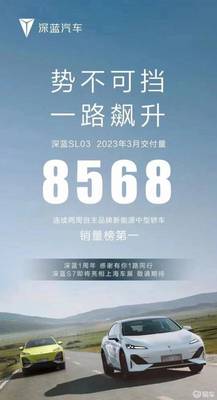 环比增长108.8%,深蓝汽车3月销量为8568辆