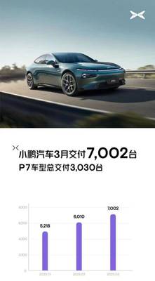 环比增长17%,小鹏汽车3月交付新车7002辆