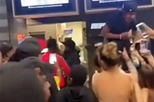 在抢劫的过程当中,有至少七个人从柜台翻入进去,跑进了厨房,然后抢走了很多的食物和饮料,也有工作人员在此期间遭受到了这些青年人的辱骂以及威胁。除此之外,在这家麦当劳被抢劫之后的一个小时,距离不远的另一家麦当劳也被抢劫了。