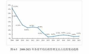 根据中国人民大学财税研究所《中国各地区财政发展指数报告2022》,2008年以来中国行政管理支出占一般公共预算支出比重有力显著下降,从2008年的15.25%降至2021年8%左右,尤其近年在8%左右小幅波动。