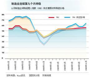 三是主要原材料购进价格和出厂价格涨幅再现回落。主要原材料购进价格指数和出厂价格指数为59.7%和51.8%,分别比上月回落2.5和2.6个百分点,并明显低于去年同期,企业运营成本上涨压力有所缓解。四是进出口有所放缓。受与圣诞、新年相关的国外市场需求提前释放等因素影响,本月出口有所回调,新出口订单指数为49.5%,比上月下降2.4个百分点。同时,随着制造业产需扩张减缓,进口指数也由上月的51.2%回落至50.4%。