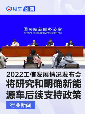易车讯 1月18日,国务院新闻办公室举行2022年工业和信息化发展情况新闻发布会,相关负责人表示,将进一步研究和明确新能源汽车后续的支持政策,推进换电模式应用和燃料电池汽车示范,特别是启动公共领域车辆全面电动化先行区城市试点,进一步强化质量品牌建设,稳定消费市场。