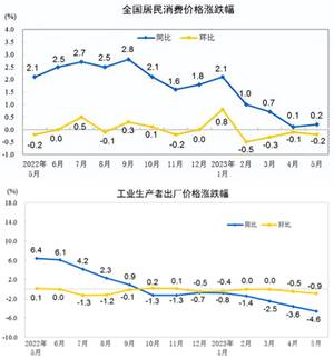 5月份,国内CPI为0.2%,而PPI为-4.6%。事实上,PPI一直呈现单边走势,从1月份的-0.8%,一路向下走到现在。