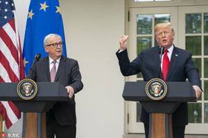 在华盛顿时间7月25日,美国总统特朗普与欧盟委员会主席容克就双边经贸议题展开会谈,取得了一些成果,双方同意通过谈判降低贸易壁垒、缓解贸易摩擦,并且双方都同意暂停加征新关税。