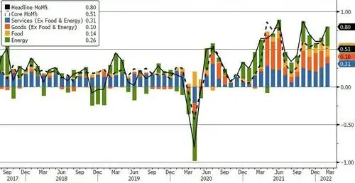 其实除了波动比较大的食品和能源价格之后,核心CPI同比增长了6.4%,创下了1982年8月以来最大的增幅,而预期值为6.4%,前值为6%,就是具体看能源的价格以及食品的价格和住房的价格都是呈持续走高的趋势,而能源价格2月环比上涨了3.5%,同比上涨了25.6%,其中汽油价格同比上涨了38%,另外石油价格同比上涨了43.6%,而其中占CPI权重约1/3的住房成本,2月环比上涨了0.5%,同比增长了4.7%。