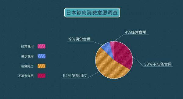 首先要说的是,日本人其实不喜欢吃鲸鱼肉,大量吃鲸鱼肉也不是日本的传统,只是因为二战过后日本蛋白质匮乏,才会大量捕鲸的。随着现在生活水平的提高,绝大部分日本民众都不会选择鲸鱼肉这种并不好吃的肉类。根据调查,现在日本人中只有10%左右的民众会吃鲸鱼肉。