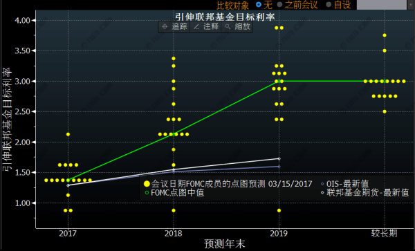 彭博预测美联储“点阵图”:预计美联储在2019年前都处于一个循序渐进加息的状态。