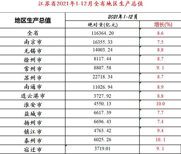 江苏省2021年,经济增速最快的城市是泰州市淮安市,增速高达10%。下面我就详细介绍一下,江苏省2021年各地GDP数据和增长数值,以及这两座经济增速最快城市,到底是靠什么领先江苏省。