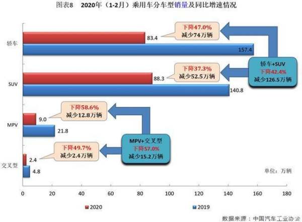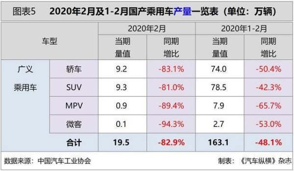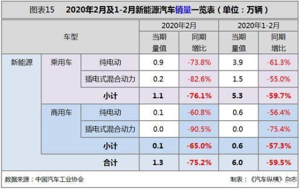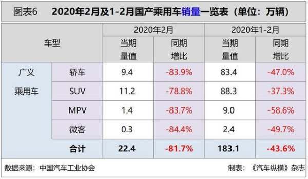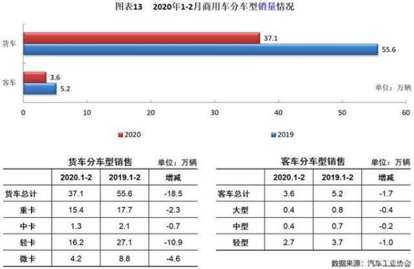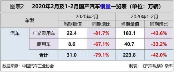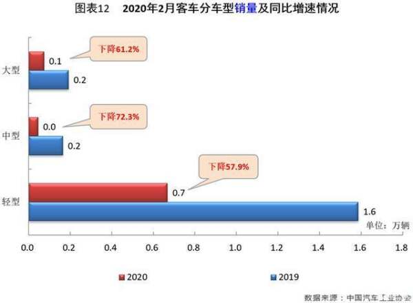 据中国汽车工业协会发布的统计数据显示,2020年2月,汽车产销大幅下滑;乘用车降幅大于行业总体;商用车同比降幅超六成;新能源汽车“八连跌”;出口同比两位数下滑。1-2月,汽车累计产销同比降幅均超40.0%;新能源汽车降幅过半数;商用车出口下跌远超行业总体。