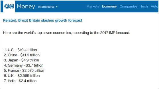 据外媒此前报道,在2017年全球经济体排名中,前五名分别是:美国、中国、日本、德国、法国。