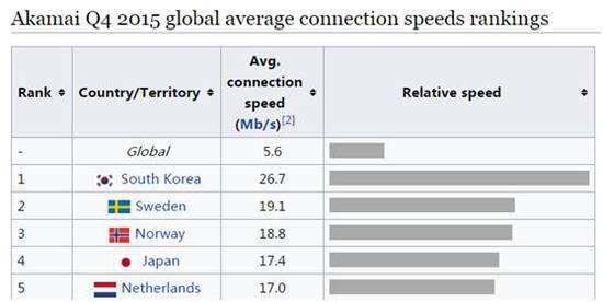 另外,并且SK电信是韩国的主流运营商,看下韩国的平均网速,世界第一。