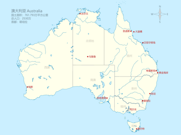 澳大利亚的人口占据世界总人口数的0.33%,在世界人口数据中排第55位。从这个数据能够看出,澳大利亚是一个地广人稀的国家,这个国家的移民人数占到了总人数的30%,在西方国家中算是较高的移民比例。