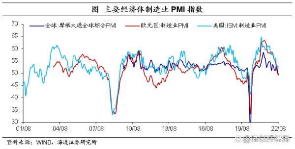 出口增速的回落,一方面,或与全球需求降温有关。8月摩根大通全球综合PMI指数回落至49.3,为2020年6月以来首次跌破枯荣线。欧美等主要经济体PMI指数也在持续下行,尤其是欧元区制造业PMI指数连续2个月位于枯荣线以下。