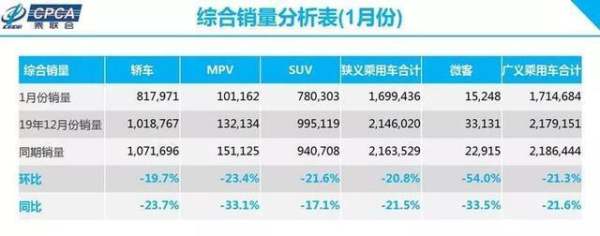 根据乘联会公布的1月份产销数据,狭义乘用车产量同比降低29%,综合销量同比下降21.5%,1月份产销量明显下降,轿车、SUV、MPV一个都没逃掉,新能源汽车回落的幅度更大。而新冠肺炎疫情真正对车市的影响是2月、3月,尤其2月份长时间的停工停产,以及复工复产的低效率才是对车市影响最大的时段,此时激活消费市场更显得迫在眉睫。