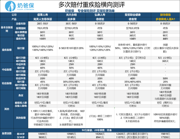 对比之下,可以看出新华多倍保A1癌症多次赔付太过严苛,大大减少了癌症多次赔付的概率。