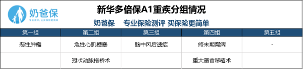 至于新华多倍保A1款具体保障内容怎么样,今天奶爸就带大家先来看看新华多倍保A1成人版重疾险: