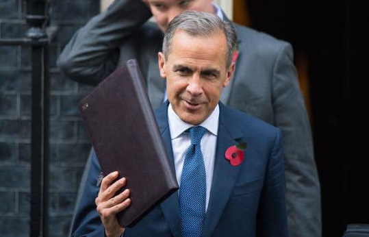 2016年10月31日,在英国伦敦,英国央行行长卡尼(前)离开唐宁街10号首相官邸。