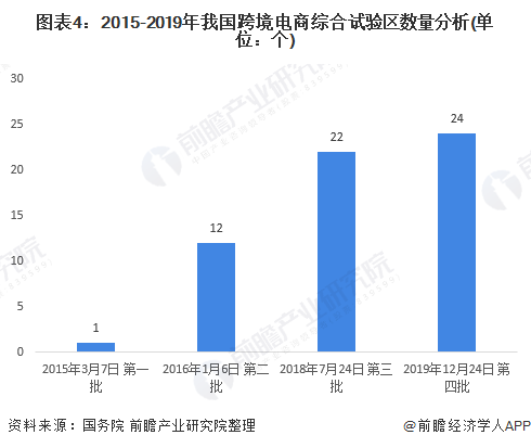 对于跨境电商,国家支持跨境电商综合试验区建设,从我国跨境贸易电子商务综合试验区的数量来看,我国跨境电商产业园正在快速发展。自2015年以来,我国国务院共批复了四批跨境贸易电子商务综合试验区;截至2019年12月,我国共有59个跨境电商综合试验区。