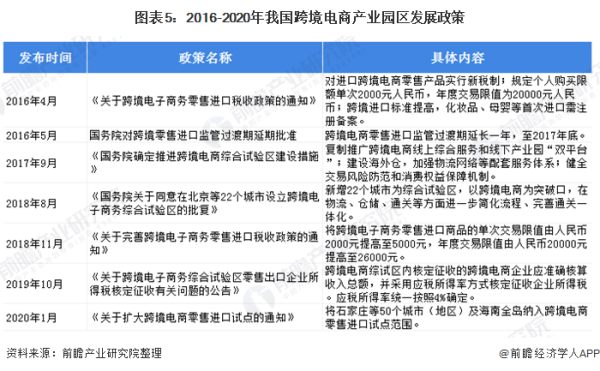 国家出台了一系列支持和规范跨境电商的政策。从目前跨境电商产业相关政策来看,税收调控仍是重点,另外在产业园发展方面,国家鼓励试点城市发挥主观能动性因地制宜开展跨境电商产业园发展事宜。