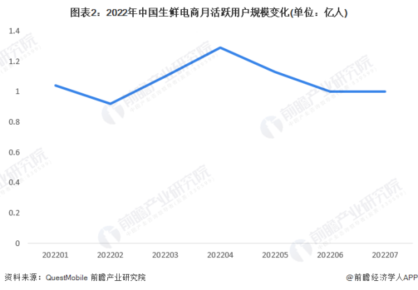 根据QuestMobile统计数据显示,2022年1-7月“线上搜索预定+到店”与“即买即送”成为都市用户本地消费的主要方式,各相关行业随城市社会环境的变化呈现波动,满足不同状态下都市人群的消费需求。其中生鲜电商月活跃用户规模保持在1亿左右。