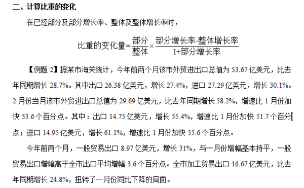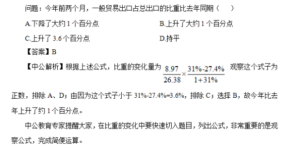 在这种题目的考查中,并没有涉及到计算,而是去判断比重的变化,结论为:
