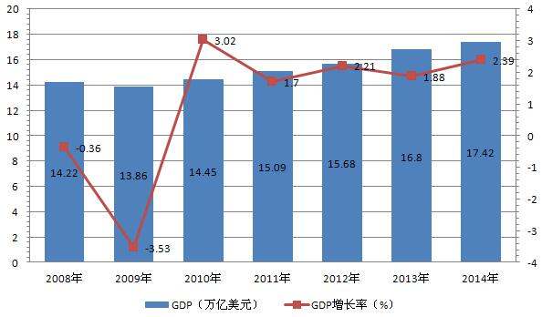2008年-2014年美国国内生总值及增速