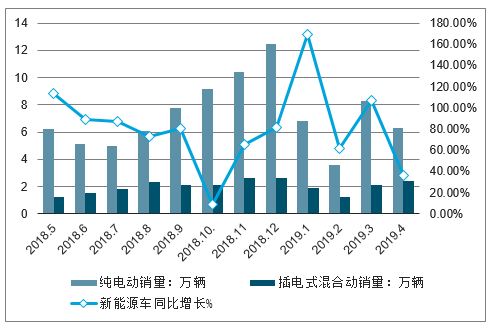 4月新能源狭义乘用车批发销售9.17万台,同比增长28.2%,相对于传统乘用车的增速-17%看,新能源车表现较强,这是新能源乘用车逐步摆脱政策依赖的较好体现。2019年1-4月新能源乘用车销量达34.5万台,同比增长83%。