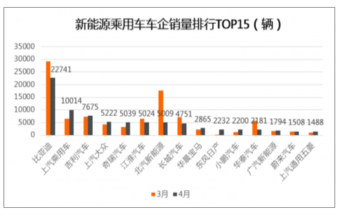 4月表现最让人意外的车企并不在TOP15的榜单中,而是跌出榜单外的长安汽车。上月销量4222辆的长安汽车,4月销量环比暴跌76.5%,只有991辆。具体到车型上看,其主要车型纯电动逸动4月销量暴跌,仅有647量,环比跌幅达81.1%。而A00级车型奔奔EV销量更是跌至两位数,4月只录得68辆。