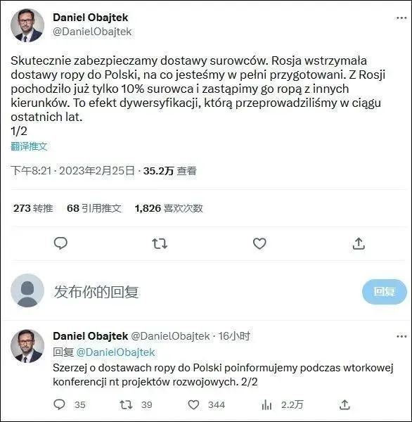 俄罗斯终于对波兰“下手”了!据法国媒体报道,波兰境内最大的石油公司奥伦石油近日对外突然宣布一则声明,称俄罗斯方面当前已经暂停了通过“友谊”管道向波兰输送石油。与此同时,波兰还强调自己绝对不会受到影响,奥伦公司首席执行官奥巴伊特克在社交媒体上表示,公司之前已为此做好了准备,“我们只有10%的原油来自俄罗斯,将用其他来源替代”。奥伦公司表示,俄罗斯上述举动不会影响波兰市场上汽油和柴油的供应。