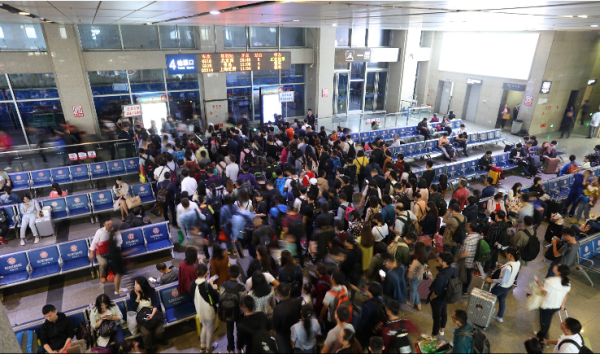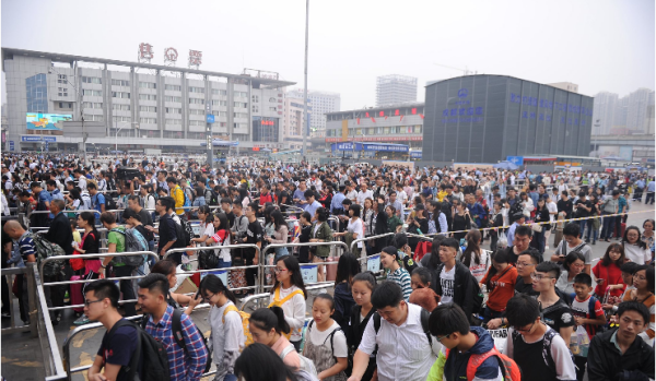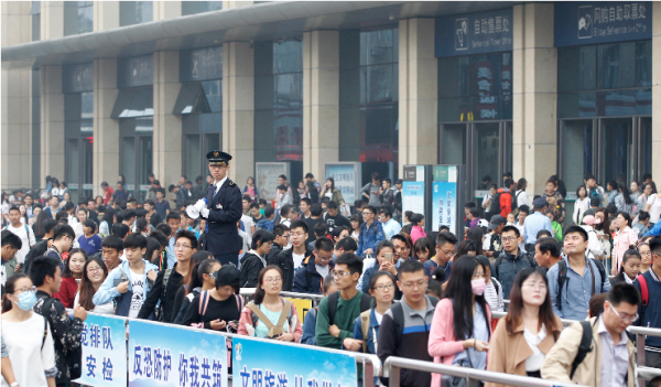 双节来临, 各地车站迎客流高峰。