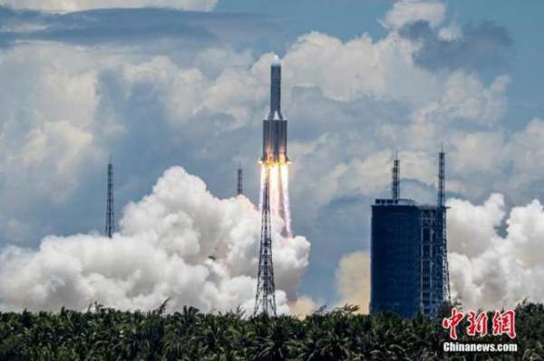 资料图:长征五号遥四火箭在中国文昌航天发射场点火升空。 骆云飞 摄