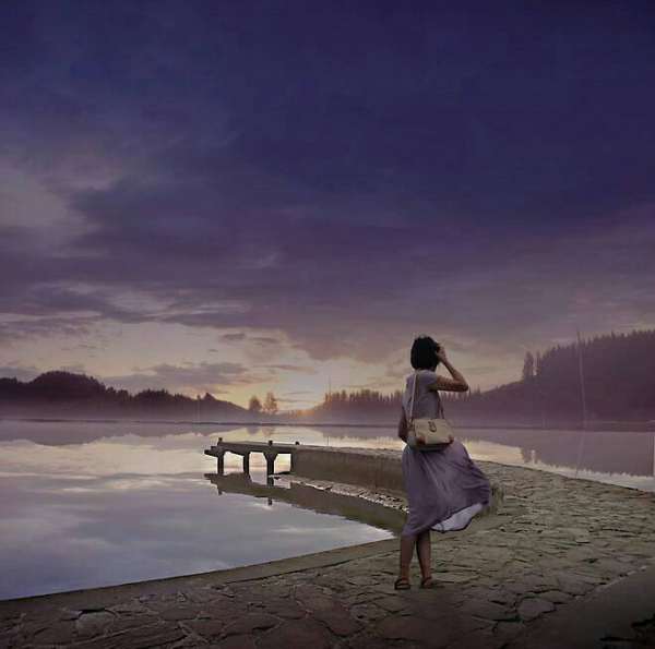 这种照片有个好处就是不用担心表情和动作,很自然的走一走或静静的站在那里就可以,风景就已经给照片很大的加持了。
