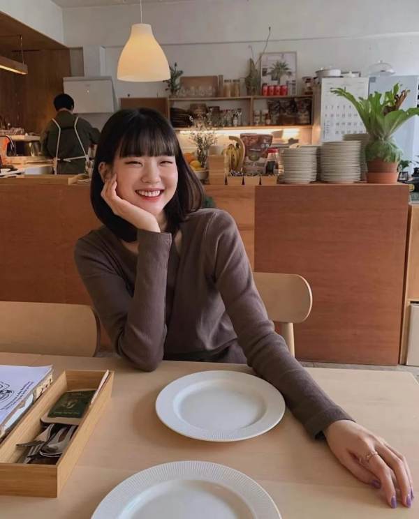 像这种舒服的坐在桌前的照片,看起来很简单,其实也有很多小心机!手臂伸到画面对角线,拉长上半身,既显线条又显瘦!
